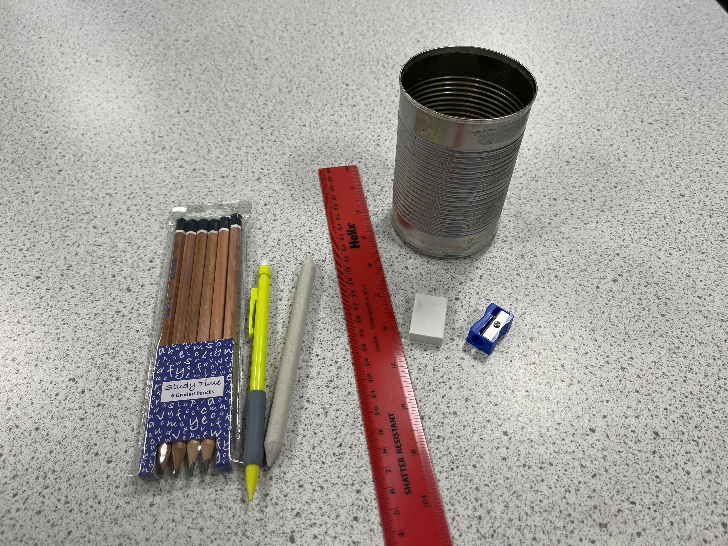 Homework : Books will be collected for marking this week, but you must bring in your drawing equipment (shading pencils, telescopic pencil, stump, eraser, sharpener and ruler). Also bring in an empty clean tin can, as shown in the video, with the label removed (don’t crush it in your bag). The picture below shows the items you will need for the next 4 Art lessons.