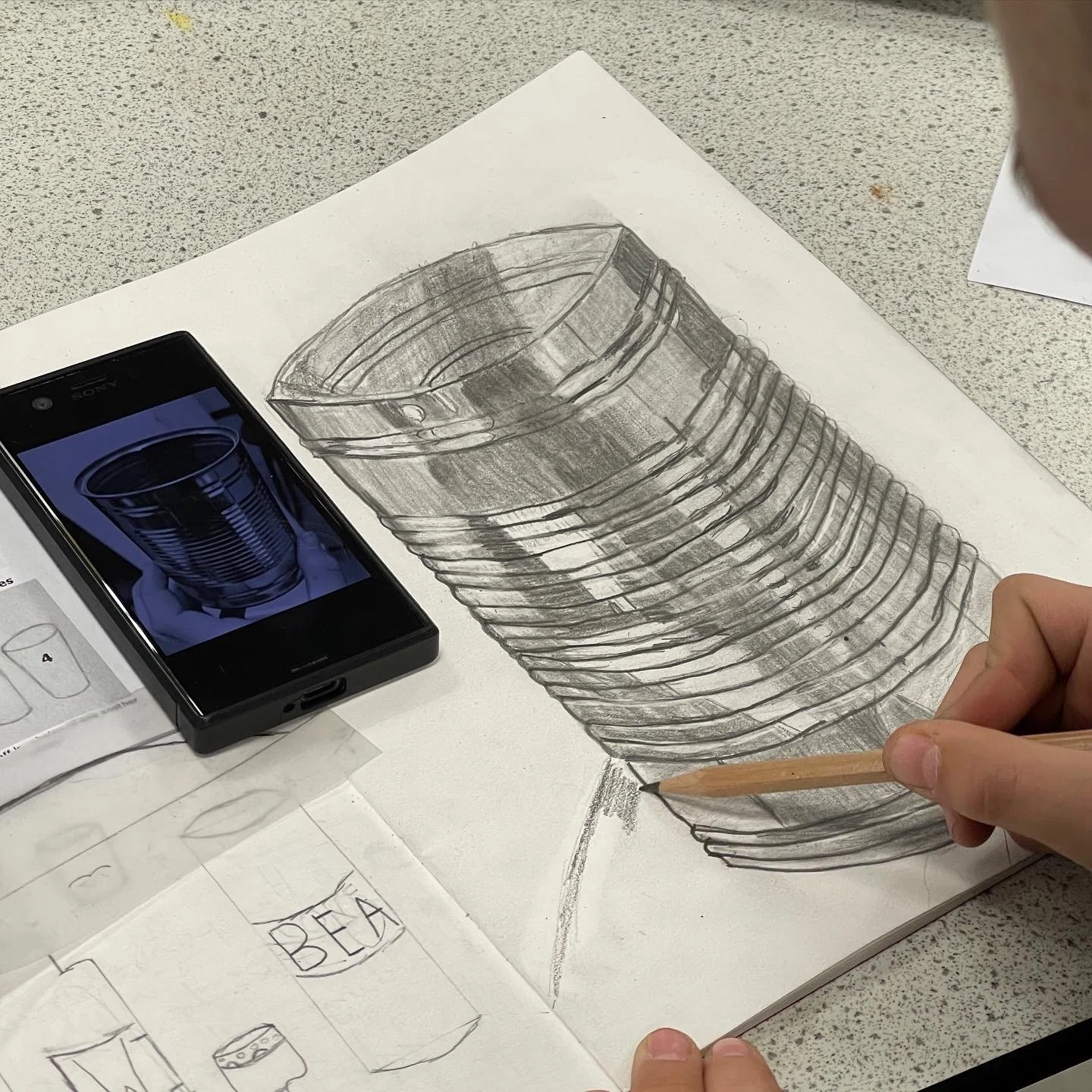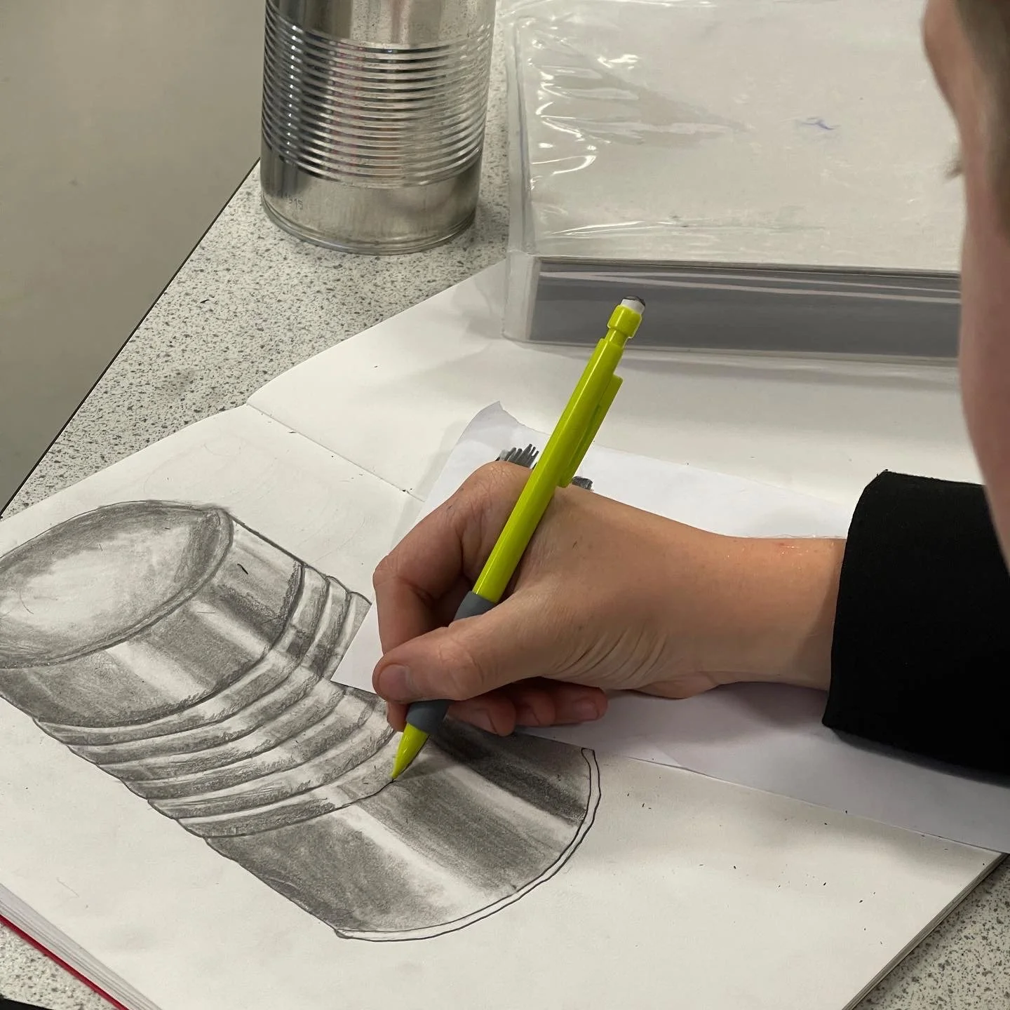 Classwork : First student should check your tin can ellipses with tracing paper. After this students watch the ‘Tin Can Drawing Assessment Examples’ video and then watch the ‘Tin Can 2 - Shading and Tone ’ video. Start to add tone to the tin can.
